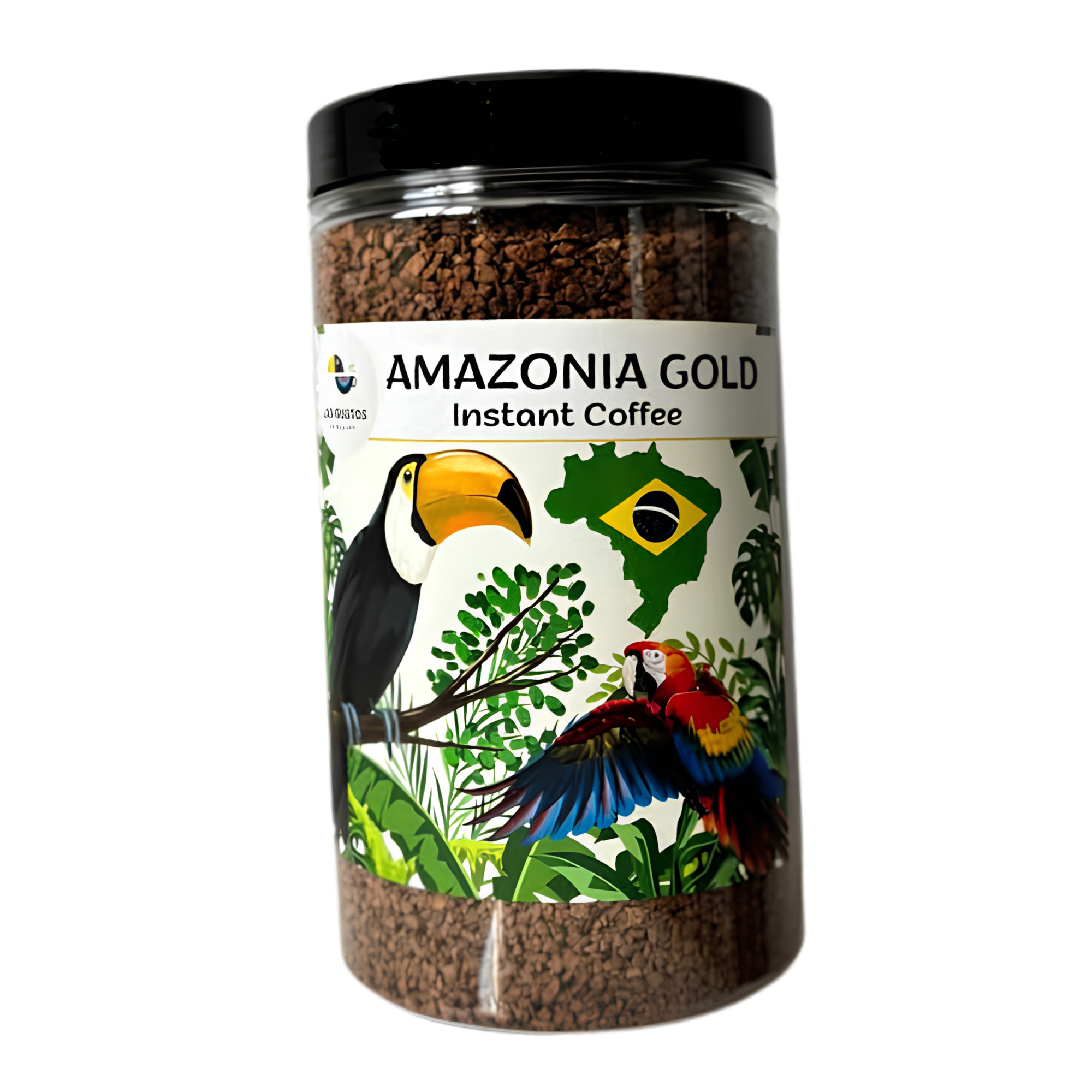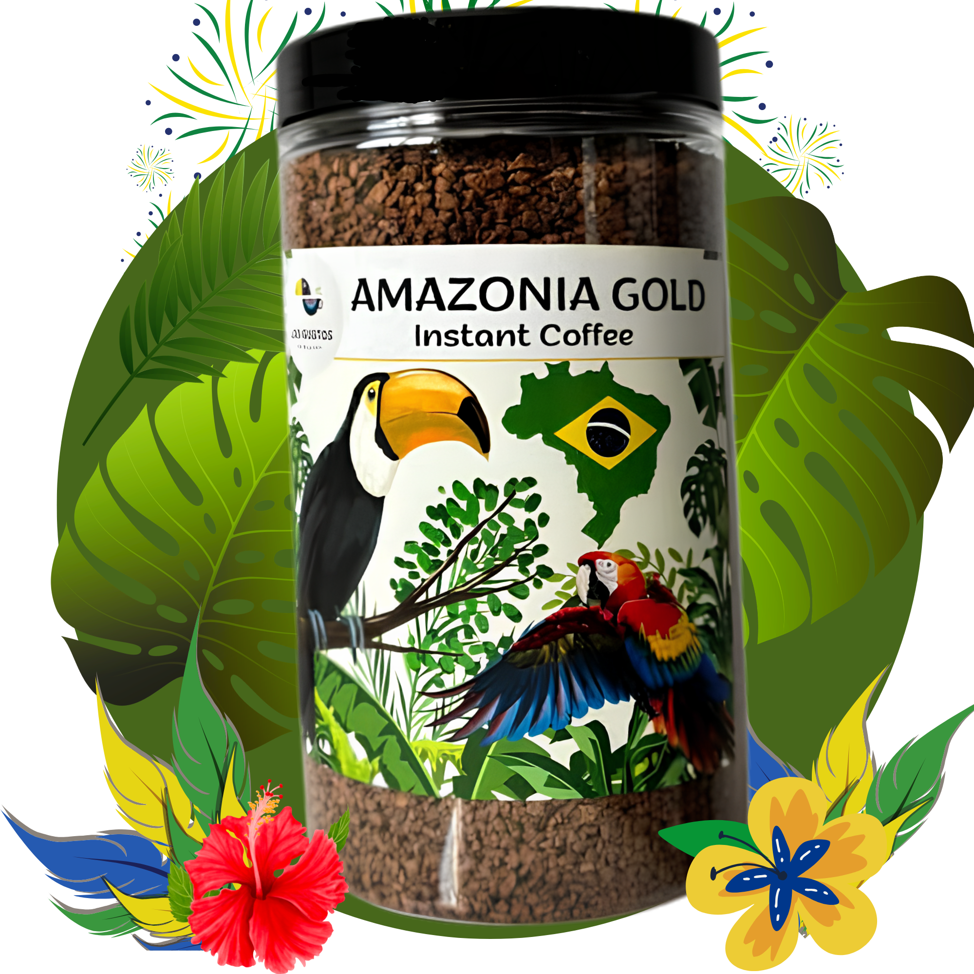 Amazonia Gold Instant Coffee 350g to wysokiej jakości kawa rozpuszczalna granulowana, inspirowana smakiem brazylijskich ziaren. Idealna dla osób, które szukają mocnej kawy instant o wyrazistym smaku i szybkim przygotowaniu.